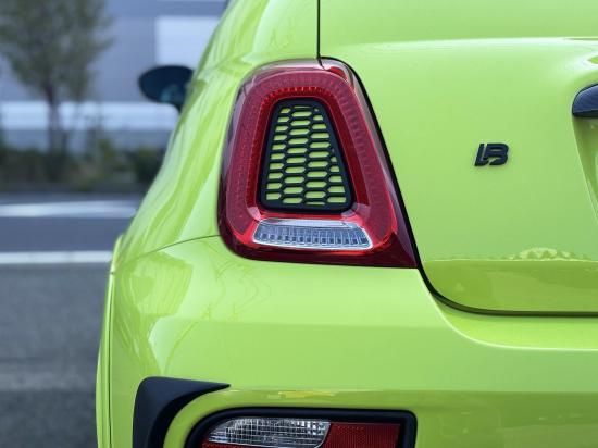 ABARTH 595/695 シリーズ4-6で、テールランプセンターのボディ色に貼付するメッシュガーニッシュです。純正リアディフューザーセンター部分のメッシュデザインとの統一感も◎です。
